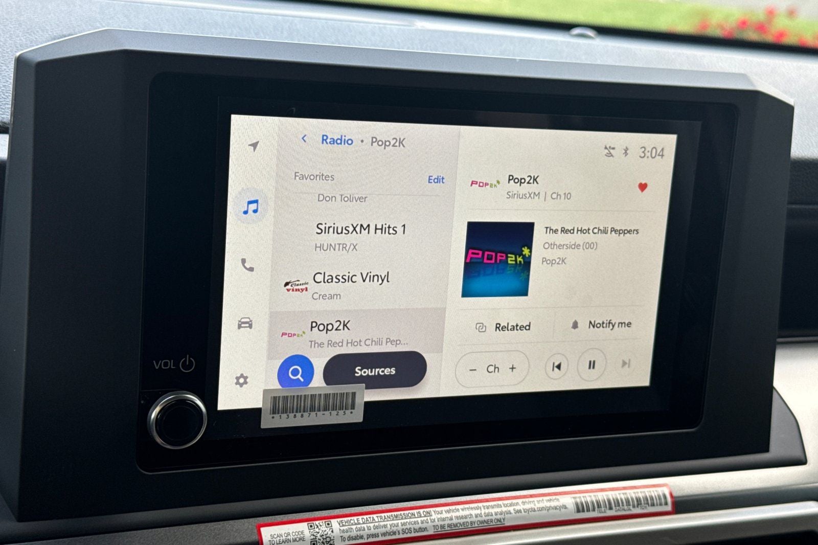 133. SiriusXM® services require a subscription after trial period. See SiriusXM Customer Agreement for complete terms at www.siriusxm.com.