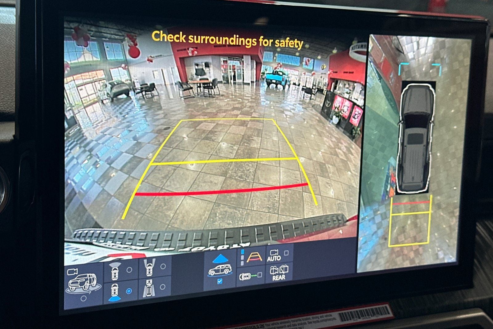 39. The Panoramic View Monitor does not provide a comprehensive view of the area surrounding your vehicle. Look around to confirm clearance. See Owner’s Manual for limitations.