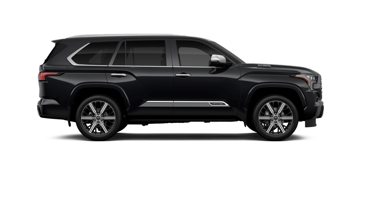 - Bright-chrome "SEQUOIA" rear door badge; chrome "CAPSTONE" door badge, garnish and window molding; color-keyed overfenders