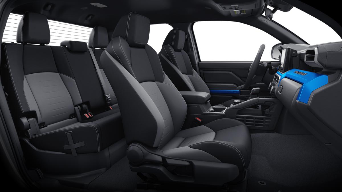TRD Off-Road Upgrade Package (A/T) — includes fabric-trimmed seats with heated 8-way power-adjustable front seats, leather-trimmed heated steering wheel, JBL® 30 Premium Audio with JBL® FLEX 31 portable speaker, Qi-compatible wireless charging, 46 Front and Rear Parking Assist with Automatic Braking (PA w/AB), 38 prewired auxiliary switches, Integrated Trailer Brake Controller (ITBC), 29 Digital Key 16 capability, 400W/120V 1 AC power inverter, and power horizontal rear window