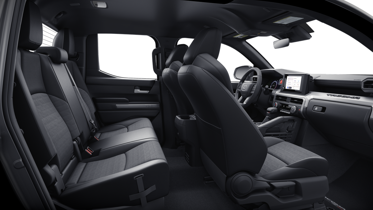 TRD Sport Premium Package (4WD A/T) — includes SofTex®-trimmed seats with heated and ventilated 8-way power-adjustable front seats, leather-trimmed heated steering wheel, 14-in. Toyota Audio Multimedia display, Panoramic View Monitor (PVM), 39 JBL® 30 Premium Audio with JBL® FLEX 31 portable speaker, moonroof, Qi-compatible wireless charging, 46 dual zone automatic climate control, Front and Rear Parking Assist with Automatic Braking (PA w/AB) 38 and Pedestrian Detection, 44prewired auxiliary switches, digital rearview mirror, Integrated Trailer Brake Controller (ITBC), 29 power open/close tailgate, 45 61 Digital Key 16 capability, 400W/120V 1 AC power inverter, and power horizontal rear window