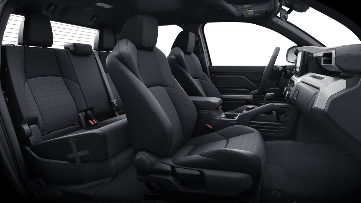 TRD Sport Premium Package (4WD A/T) — includes SofTex®-trimmed seats with heated and ventilated 8-way power-adjustable front seats, leather-trimmed heated steering wheel, 14-in. Toyota Audio Multimedia display, Panoramic View Monitor (PVM), 39 JBL® 30 Premium Audio with JBL® FLEX 31 portable speaker, moonroof, Qi-compatible wireless charging, 46 dual zone automatic climate control, Front and Rear Parking Assist with Automatic Braking (PA w/AB) 38 and Pedestrian Detection, 44prewired auxiliary switches, digital rearview mirror, Integrated Trailer Brake Controller (ITBC), 29 power open/close tailgate, 45 61 Digital Key 16 capability, 400W/120V 1 AC power inverter, and power horizontal rear window